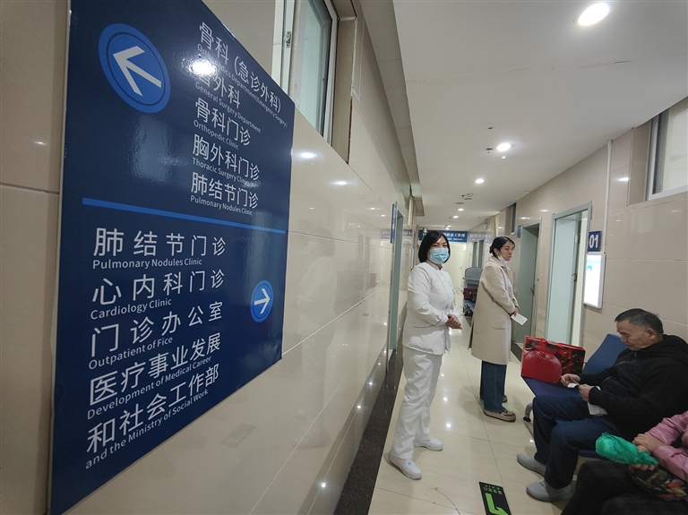 郑州一家医院的肺结节门诊外候诊的患者。