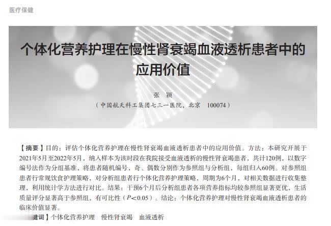 参考资料:[1]张 颖全国配资炒股门户,个体化营养护理在慢性肾衰竭血液透析患者中的 应用价值,名医,2023-11-28